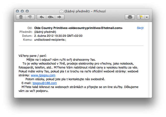 Na druhou stranu to má i své výhody. 90% veškeré e-mailové komunikace tvoří SPAM. A právě proti SPAMu, u kterého autoři použili automatický překladač, můžeme být naprosto imunní. No uznejte sami, naletěli byste na některou z nabídek na obrázcích níže?