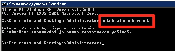 Napište příkaz „netsh winsock reset“ a potvrďte ENTERem