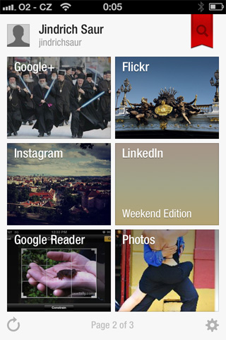 Flipboard není sociální sítí, ale aplikací, ve které si můžete nastavit jednotlivé sociální sítě, které používáte a aplikace z nich vytvoří váš vlastní časopis.