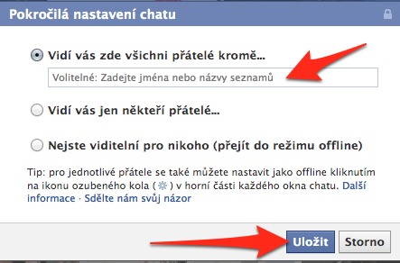Do zvýrazněného pole napošte lidi, kteří vás nemají vidět a dejte Uložit.